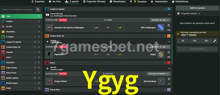 O Ygyg oferece uma grande seleção de opções de apostas em e-sports com probabilidades competitivas
